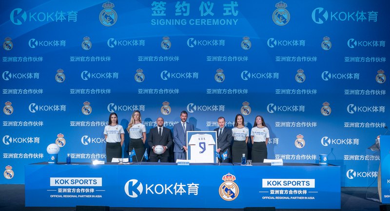 - 2021年10月,皇家马德里足球俱乐部在马德里伯纳乌球场召开发布会,正式宣布KOK体育成为新赛季(2021/2022)亚洲区独家合作伙伴,KOK体育全球市场总监兼发言人与皇家马德里足球俱乐部公关总监艾米利奥.布特拉格诺(Emilio Butraguen)先生共同出席并签署协议,同时与会的还有皇马传奇球员罗伯托·卡洛斯(Roberto Carlos)。